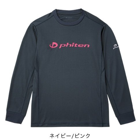 - [ファイテン] RAKUシャツ 長袖 Tシャツ Phitenロゴ ネイビー/ピンク Mサイズ