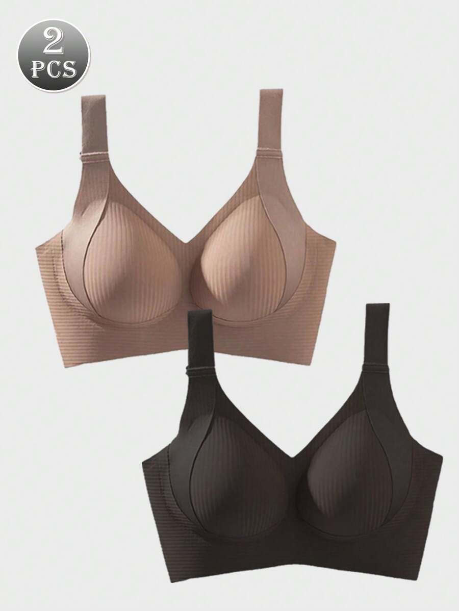 - インティメート ブラジャー 2枚入り ウーマン シームレス プッシュアップブラ パッド取り外し可能 カジュアル 快適 リフティング