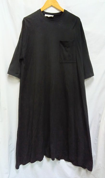 > ENFOLD☆エンフォルド カットソー ロングワンピース 38(M)黒 ブラック Aライン 胸ポケット フレアロングトップス
