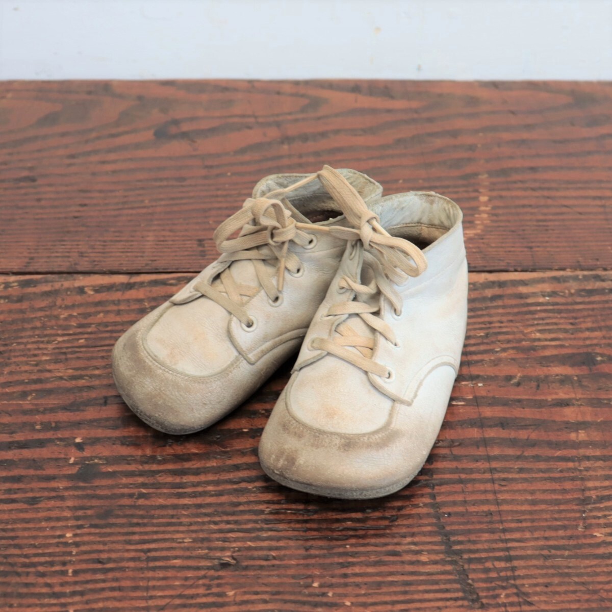 - #3490 アメリカ アンティーク キッズシューズ レザー ナースリーシューズ ヴィンテージ ディスプレイ 雑貨 靴 コレクション