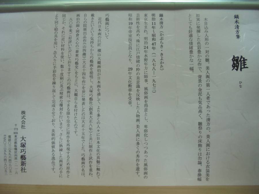 - 模写 雛軸 鏑木清方筆 大塚工芸社手彩色複製品 桐共箱付 未使用 美品 7489 京都雲屋