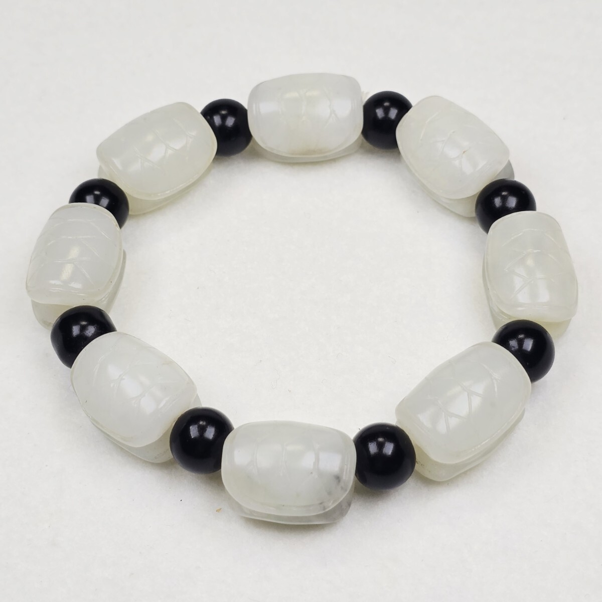 - 中国古美術 本物和田白玉 細工手彫 亀甲紋(富甲天下)数珠 根付 装身具 縁起物