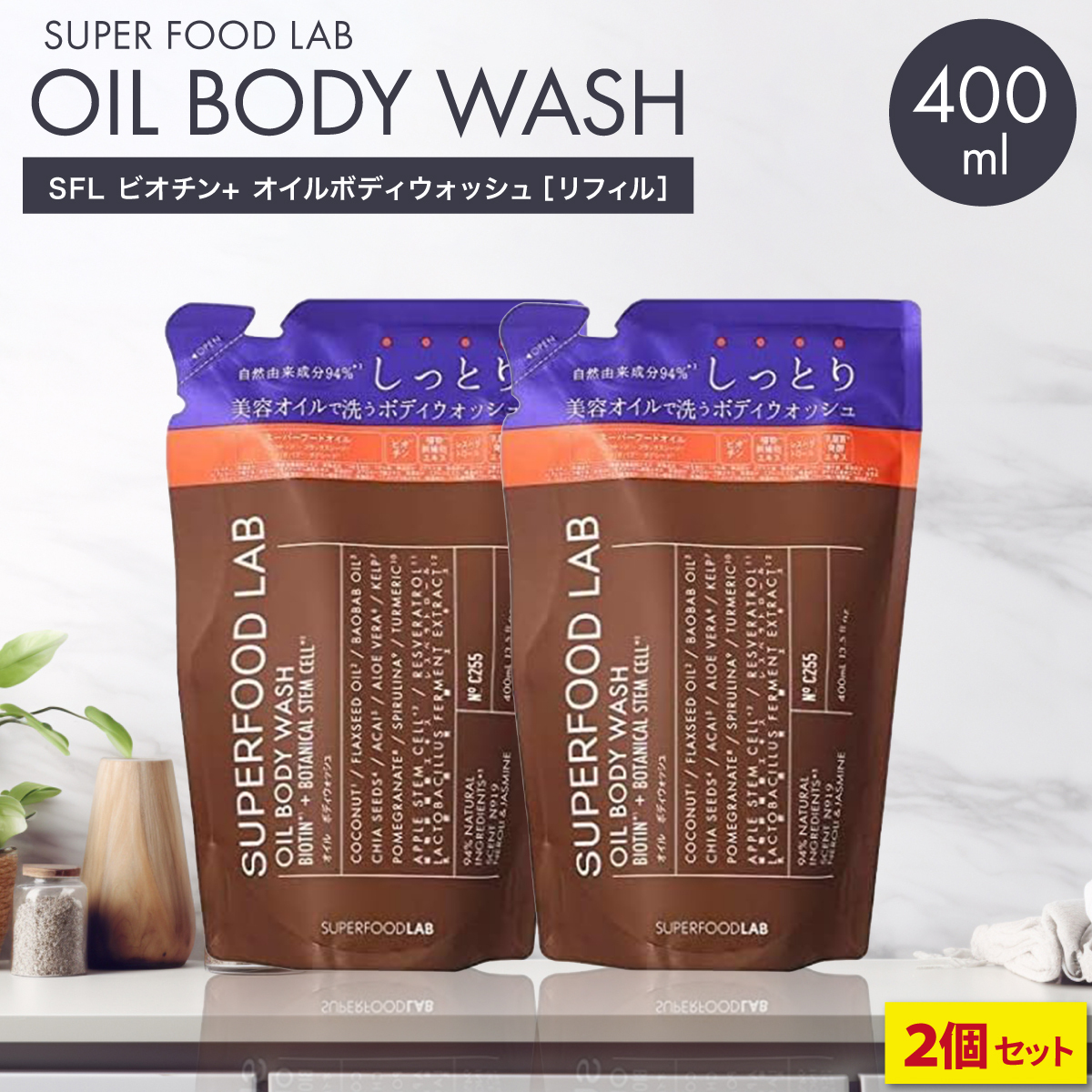 - スーパーフードラボ しっとり ボディソープ 詰め替え 400ml 2個セット リフィル 無添加 ボディウォッシュ