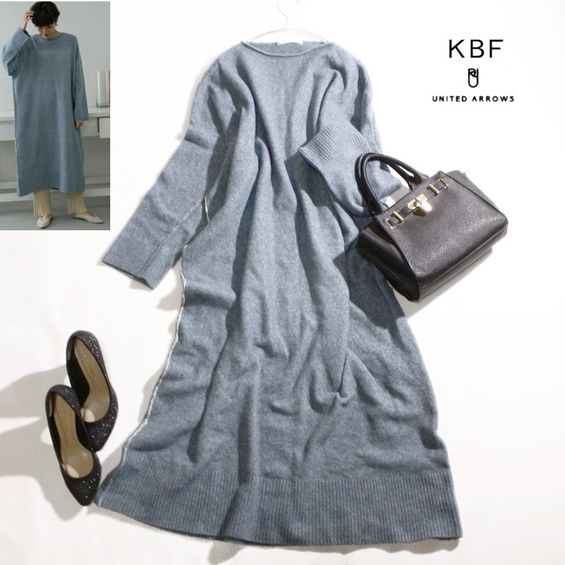 > 美品 KBF ケービーエフ アーバンリサーチ 冬 あったか きれい色 ルーズオーバーニットワンピース ゆったり ロングニットワンピース 水色