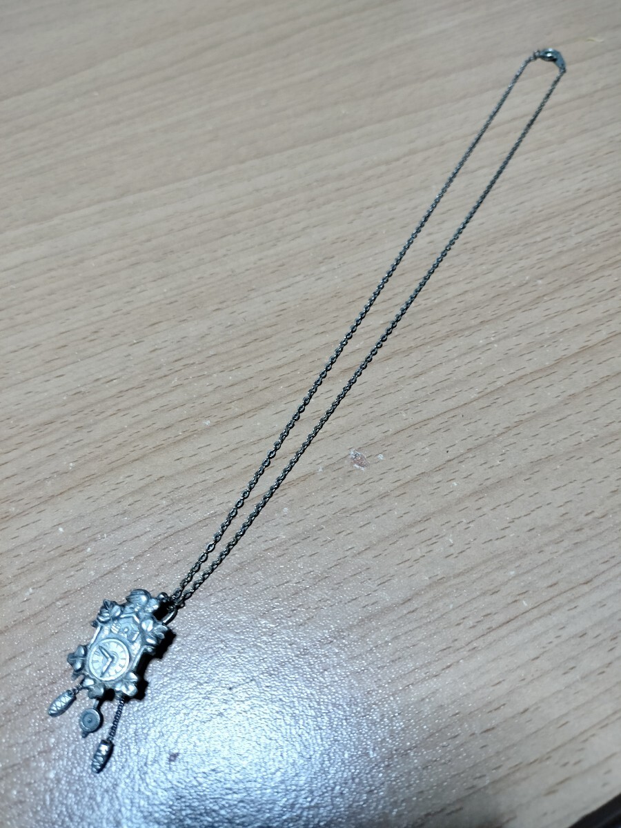 - ペンダント シルバー 鳩時計型 振り子が揺れお洒落 レトロ 110円送 中古