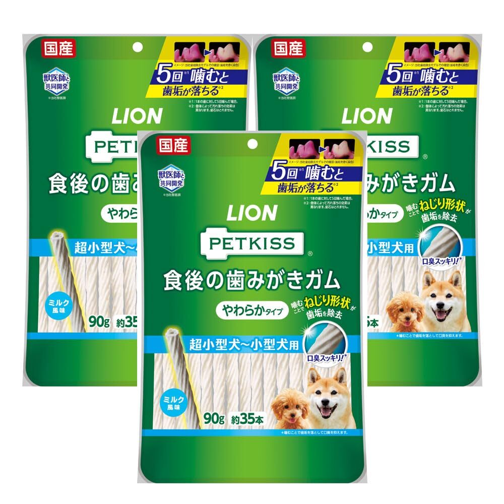 - ライオン (LION) ペットキッス (PETKISS) 犬用おやつ 食後の歯みがきガム やわらかタイプ 超小型犬~小型犬用 3個パック (まと