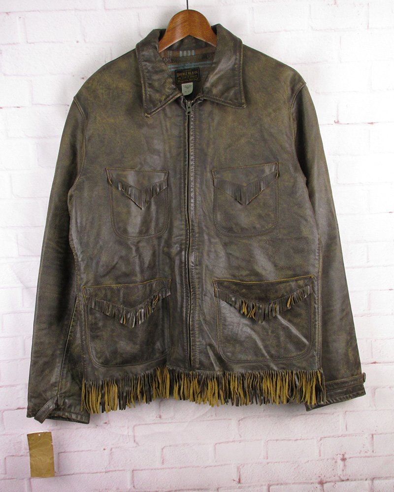 - FJ28179 RRL ダブルアールエル フリンジ レザージャケット USED加工 ブラウン系 M 未使用