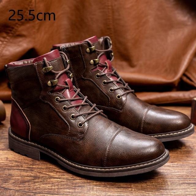 - バイクブーツ レトロ ライダース イギリス風 ショートブーツ 合成革 メンズブーツ ブーツ ロングブーツ 防滑ソール 25.5cm