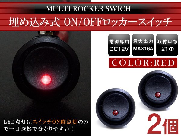 - 『2個』汎用 丸型 ON/OFFスイッチ 21mm 21φ ロッカースイッチ 12V レッド 赤 船 キャンピングカー 埋め込み 増設スイッチ 丸ボタン