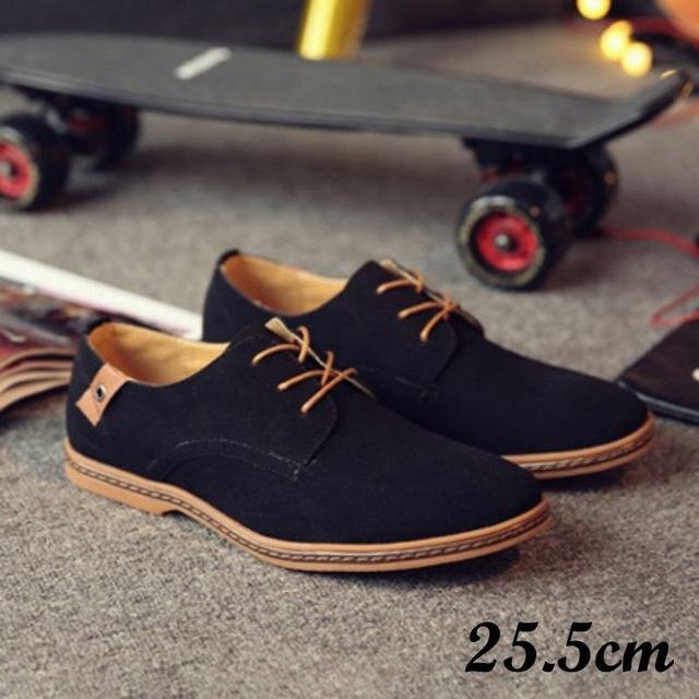 - オックスフォードシューズ メンズ メンズシューズ ロングノーズスエード 屋外 アウトドア オフィス 紳士靴 仕事 おしゃれ ブラック25.5cm