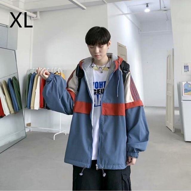 - ジャケット ナイロンジャケット リバーシブルブルゾン ブルゾン アウター カバー ストレッチ フード付き 秋春冬コーデ ブルー XL