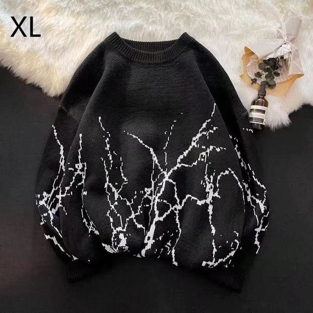 > メンズニット メンズ セーター カットソー トップス オシャレ カジュアル キャンパス 通学 秋冬コーデ ブラック XL