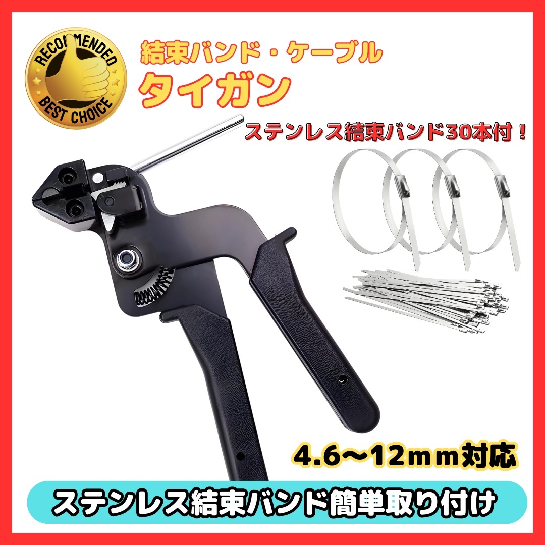- (A) 結束バンド ケーブル タイガン ステンレス 締め付け 切断 結束工具 片手操作 対応 配線 修理 メタルタイ