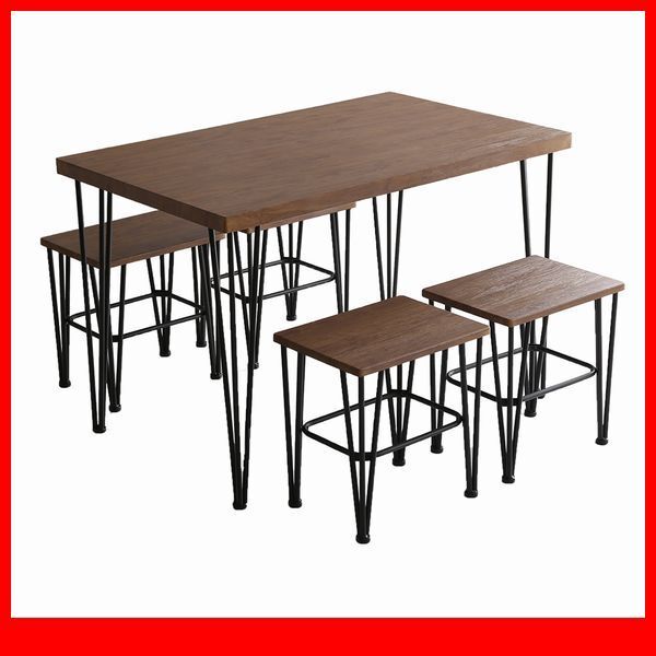 > ダイニングセット★ヴィンテージダイニング5点セット/テーブル 椅子4/カフェ 作業台に/木目調 ブラウン系/ウォールナット/a3