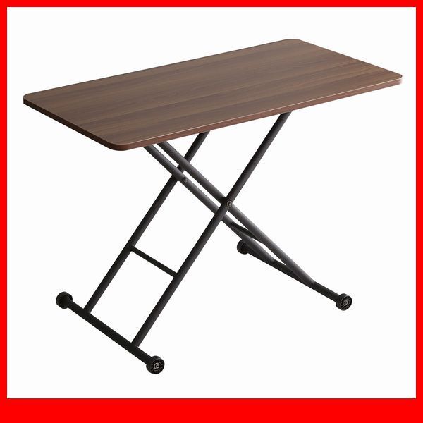 > テーブル★新品/折りたたみ式無段階ガス圧昇降テーブル/ローテーブル ダイニングテーブル 作業台/完成品 木目調/ウォールナット/a3