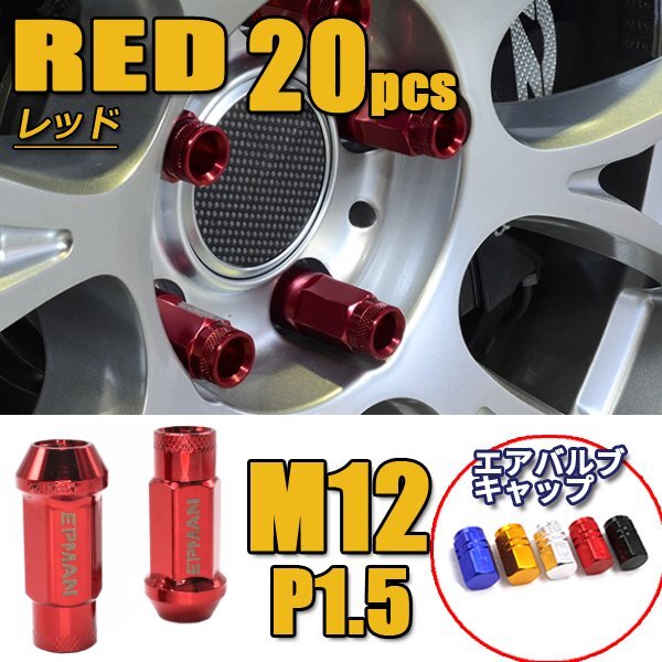 > ホイールナット M12×P1.5 20個 スチール製 ロング 貫通型 自動車 レーシングナット トヨタ ホンダ マツダ 三菱 等 赤 送料無料