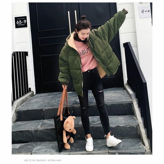- 中綿ジャケット レディース ショートコート ダウンコート ショート丈 フード付き アウター グリーン M