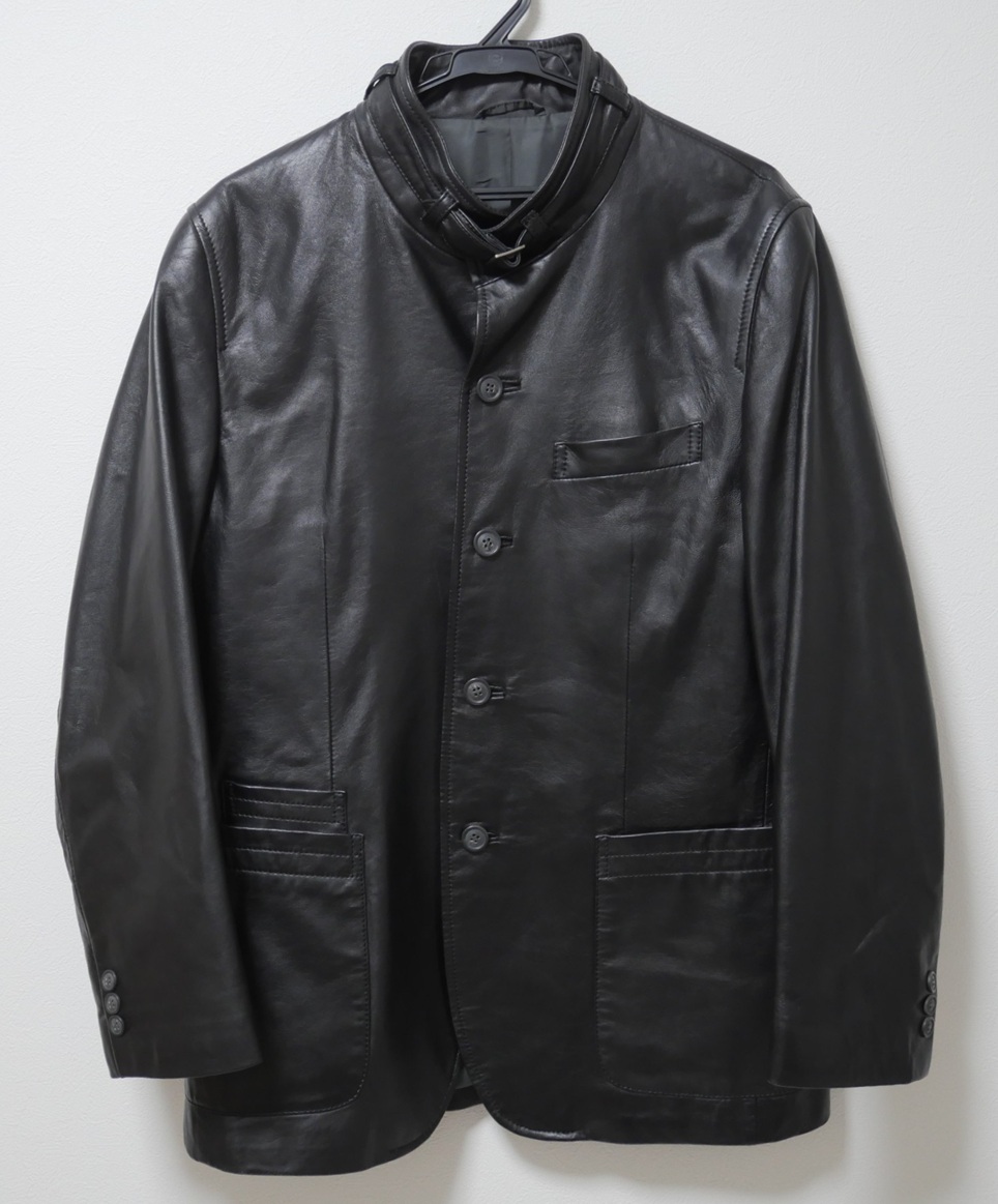 - brummell スタンドカラー ラムレザー ジャケット 黒 L 羊革
