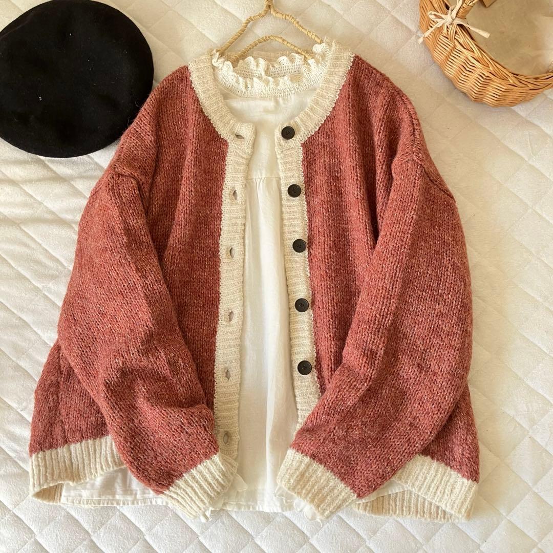 > 新品★サマンサモスモス★sm2★ピンク*バイカラー*クルーネックカーディガン