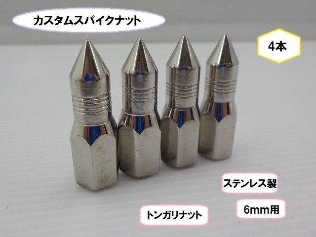 - VT★☆ステンレス製カスタムスパイクナット(トンガリナット)6mm用 4本 アメリカン・ミニバイク(ハーレー・レブル・モンキー・DAX)