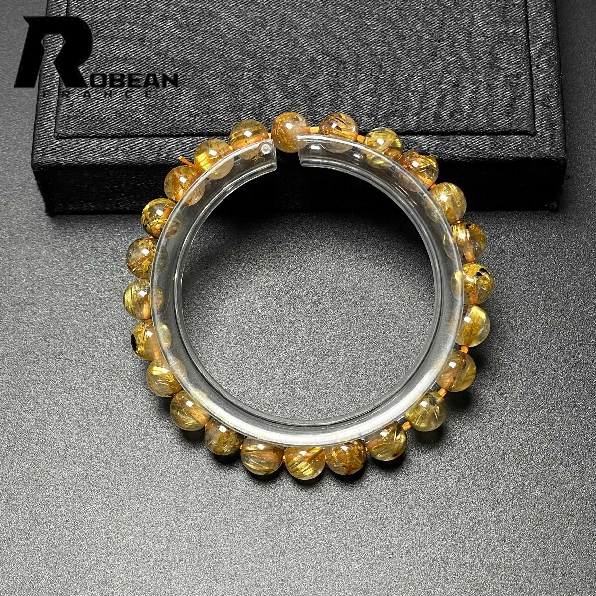 > レア EU製 定価6万円★ROBEAN・太陽花タイチンルチル★黄金針水晶 金運 開運 ゴールド ブレスレット パワーストーン 7.4-7.8mm M0715879