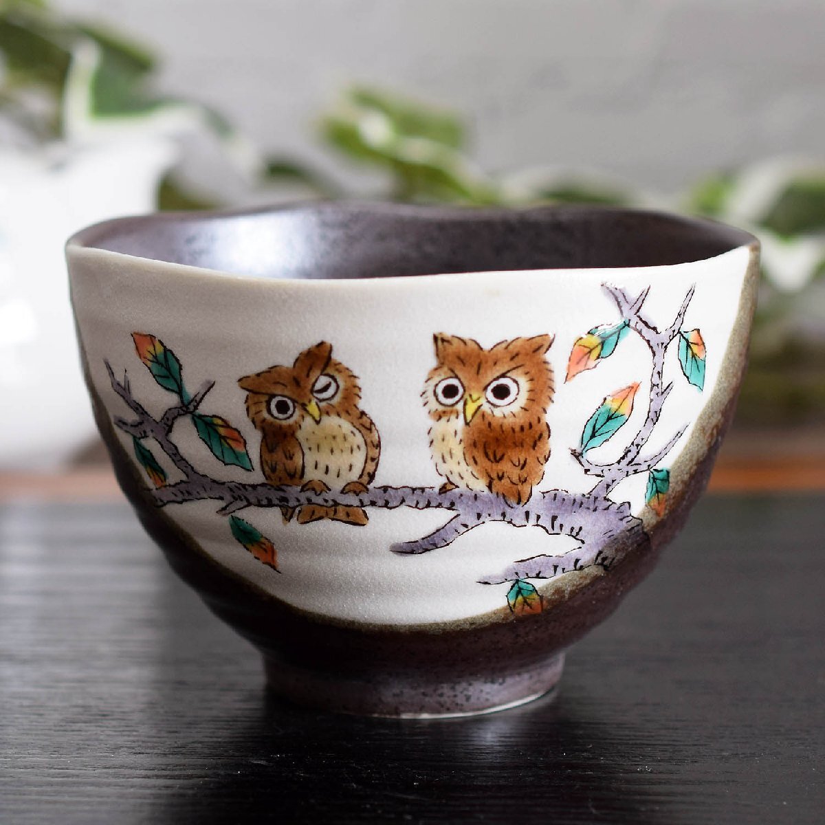 - 九谷焼 お茶漬け茶碗 ふくろう / 陶器 高級 ブランド 和食器 茶漬け碗 伝統工芸 和柄 美品 新品 未使用 即決