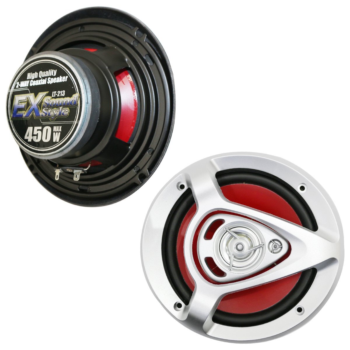 - 『6インチ/15cm』カースピーカー 450W 2WAY 150mm 2個 左右 セット レッド ドームツイーター メッシュグリル バイクなど