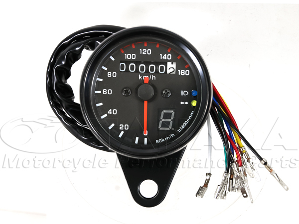 > 汎用(12V) 60mm スピードメーター ブラックフェイス(シフトポジションインジケーター 付) [Y1634] 田中商会
