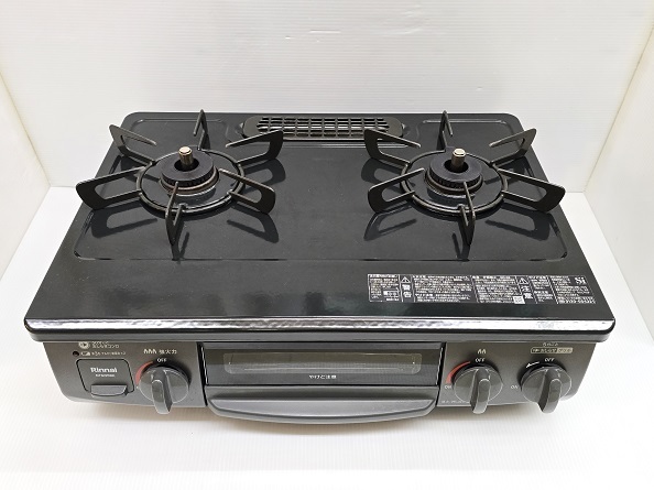 - 【中古品】 リンナイ Rinnai ガスコンロ LPガス(プロパンガス) 左強火力 水無片面焼グリル NTM35BKL 2022年製 〇YR-18931〇