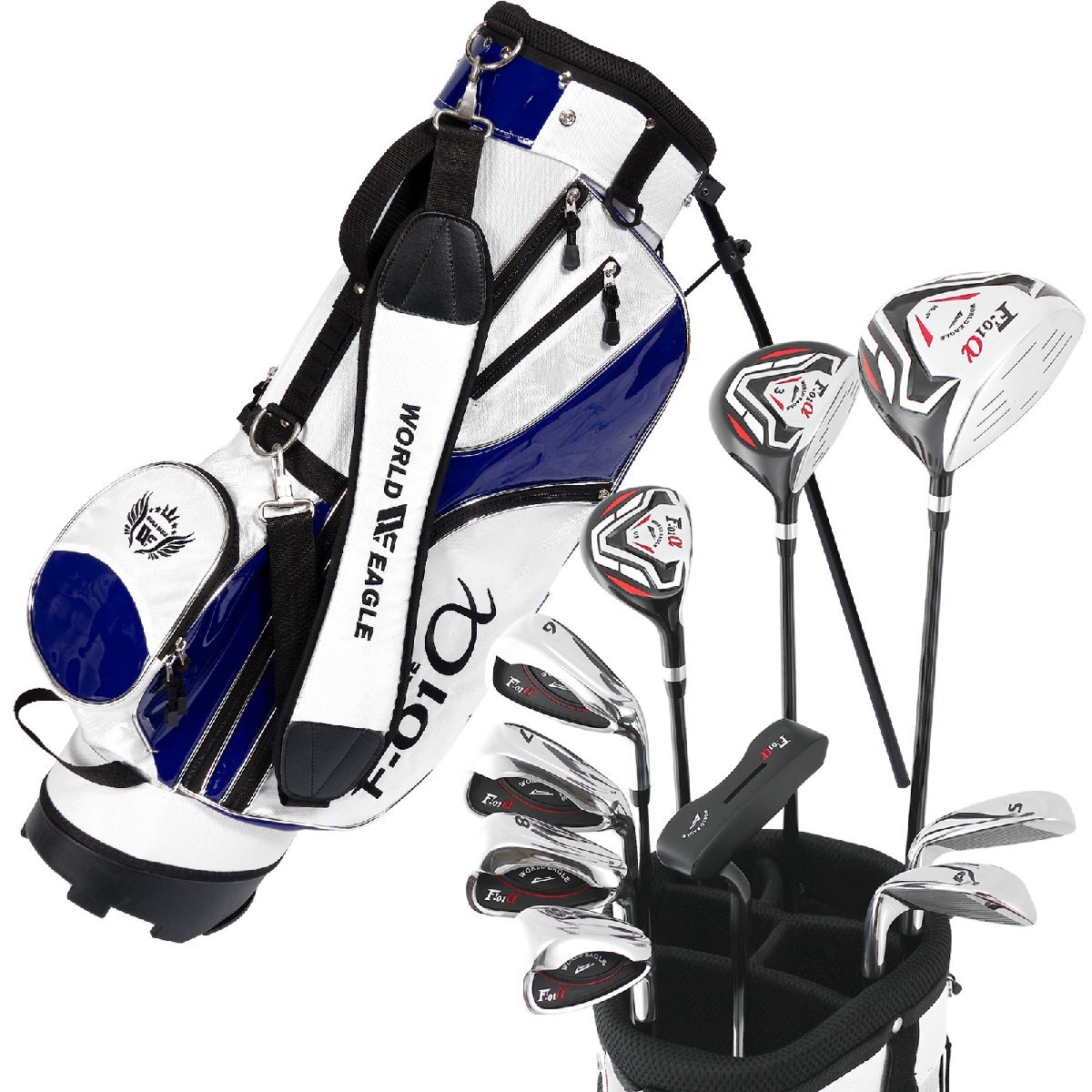 - F-01α クロスモデル メンズゴルフセット スタンドキャディバッグ付 右利き用 バッグ:ホワイトブルー/フレックスS[63617]