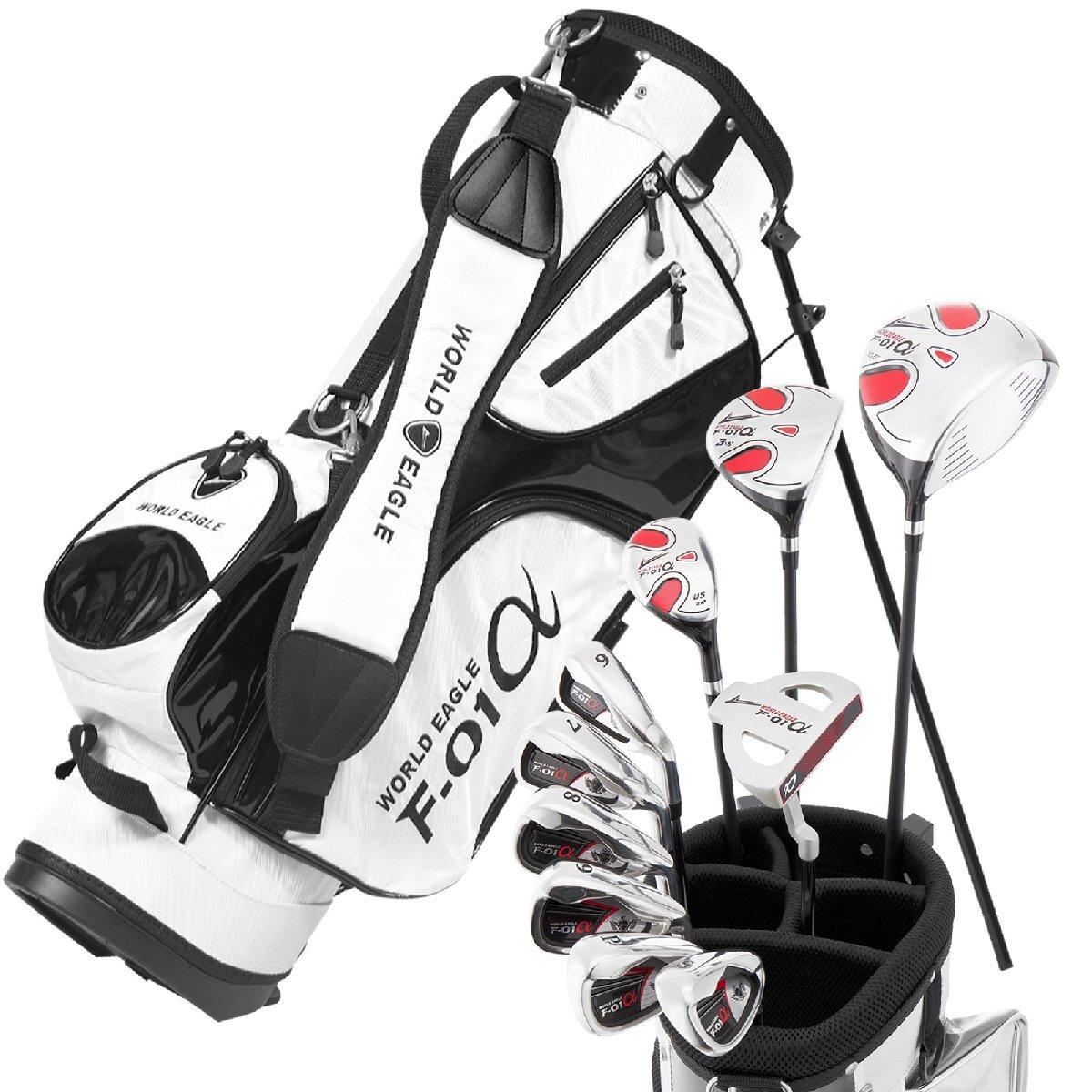 - F-01α メンズゴルフクラブセット スタンド式軽量キャディバッグ付 右利き用 フレックスR/バッグ:ホワイトカラー[33945]