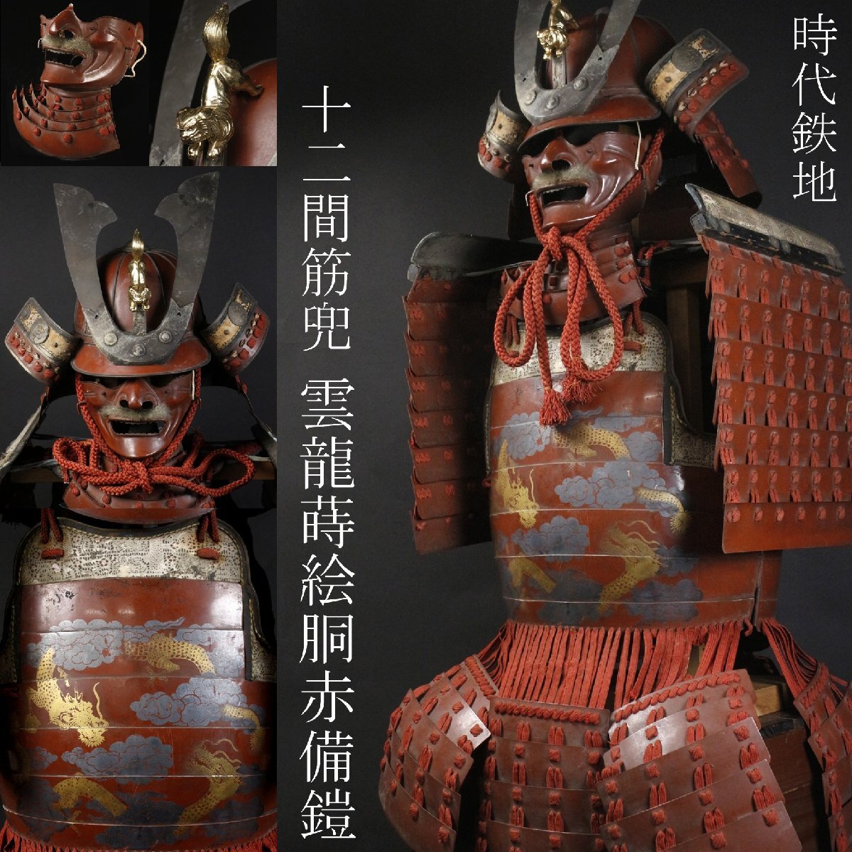 > 【LIG】時代鉄地 赤備え 金銀蒔絵 雲龍蒔絵胴鎧 十二間筋兜 鎧兜 甲冑 時代武具 [.QEW]25.11
