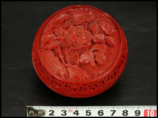 - 【銀閣】中国美術 赤い 花模様 香合 旧家蔵出 送料無料(LC904)