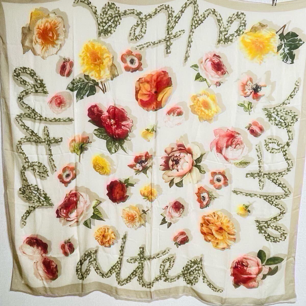 - 大判ストール 花柄 130㎝角 軽量 80g シルク混 薔薇 アルテア altea イタリア ミラノ 薄手