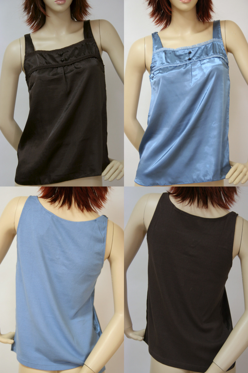 > 送料無料◆2色組◆外見せインナー◆摩擦軽減◆【前身】サテン生地&【後身】綿100%◆ラン型キャミソール(M/ペールブルー&ダークブラウン)