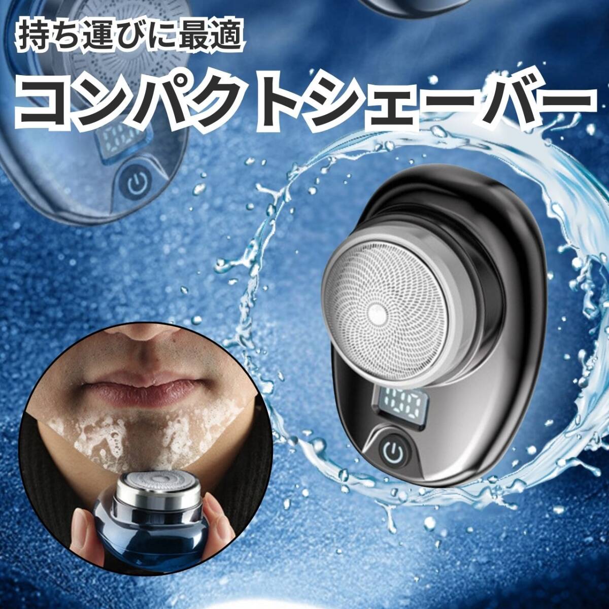 - ブラック ミニ回転式 水洗い防水 小型 メンズ USB充電式 携帯用 IPX7 シェーバー