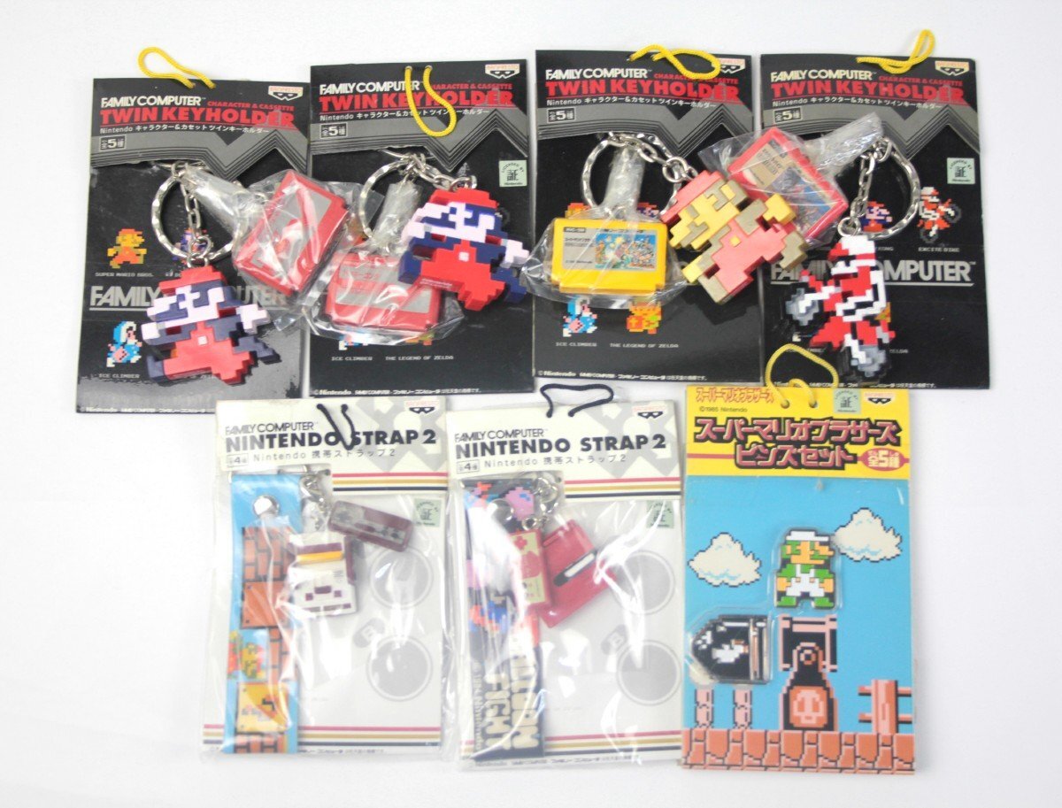 > [まとめ売り 長期保管品] Nintendo 任天堂 キャラクター&カセット ツインキーホルダー 携帯ストラップ2 マリオ ファミコン グッズ