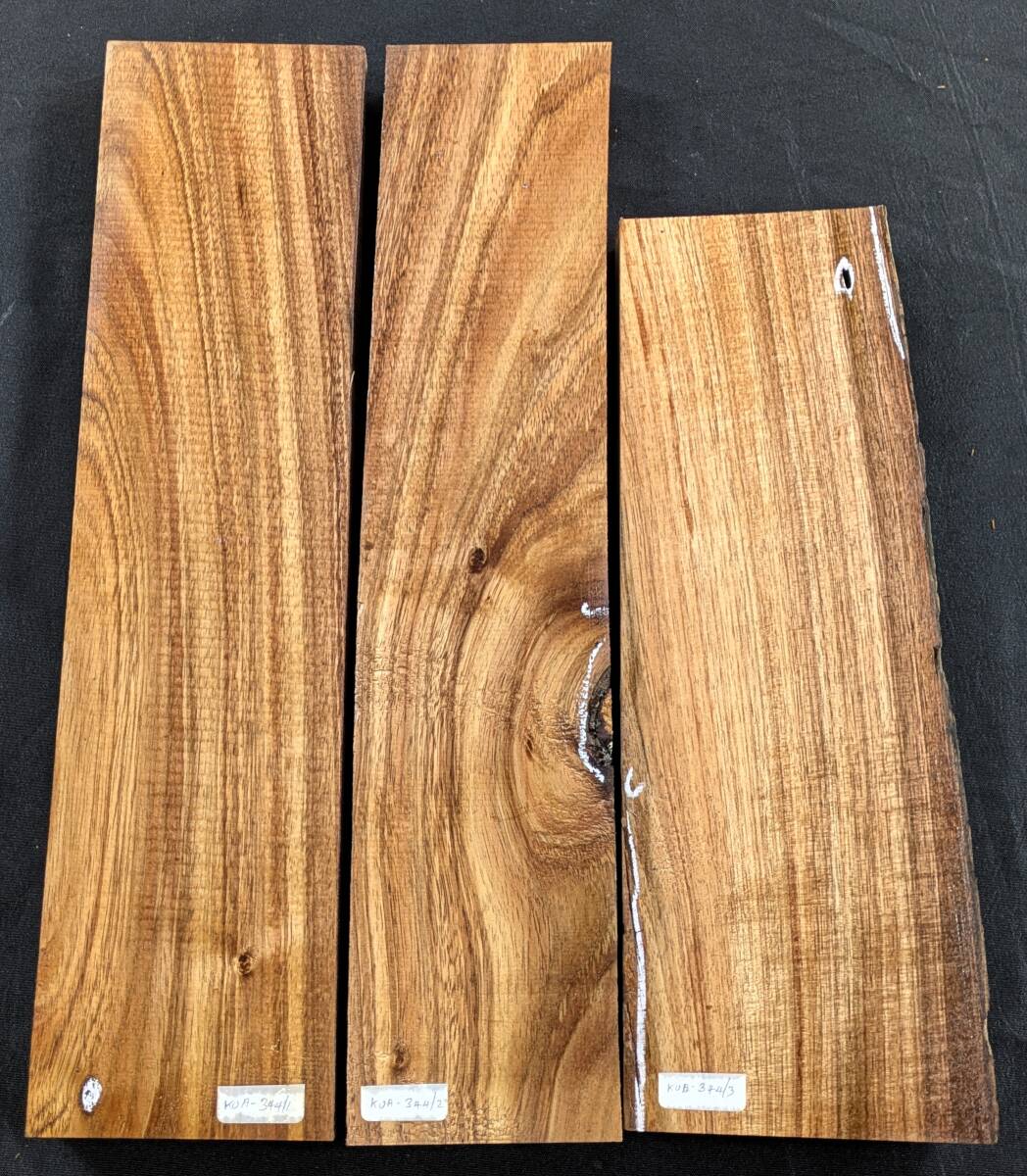 > 【ハワイアンコア・3本セット】◆KOA-344◆2Aグレードカーリー杢◆送無◆ハワイアンコア◆ハワイ島直送◆ Hawaiian Koa #1#2#3