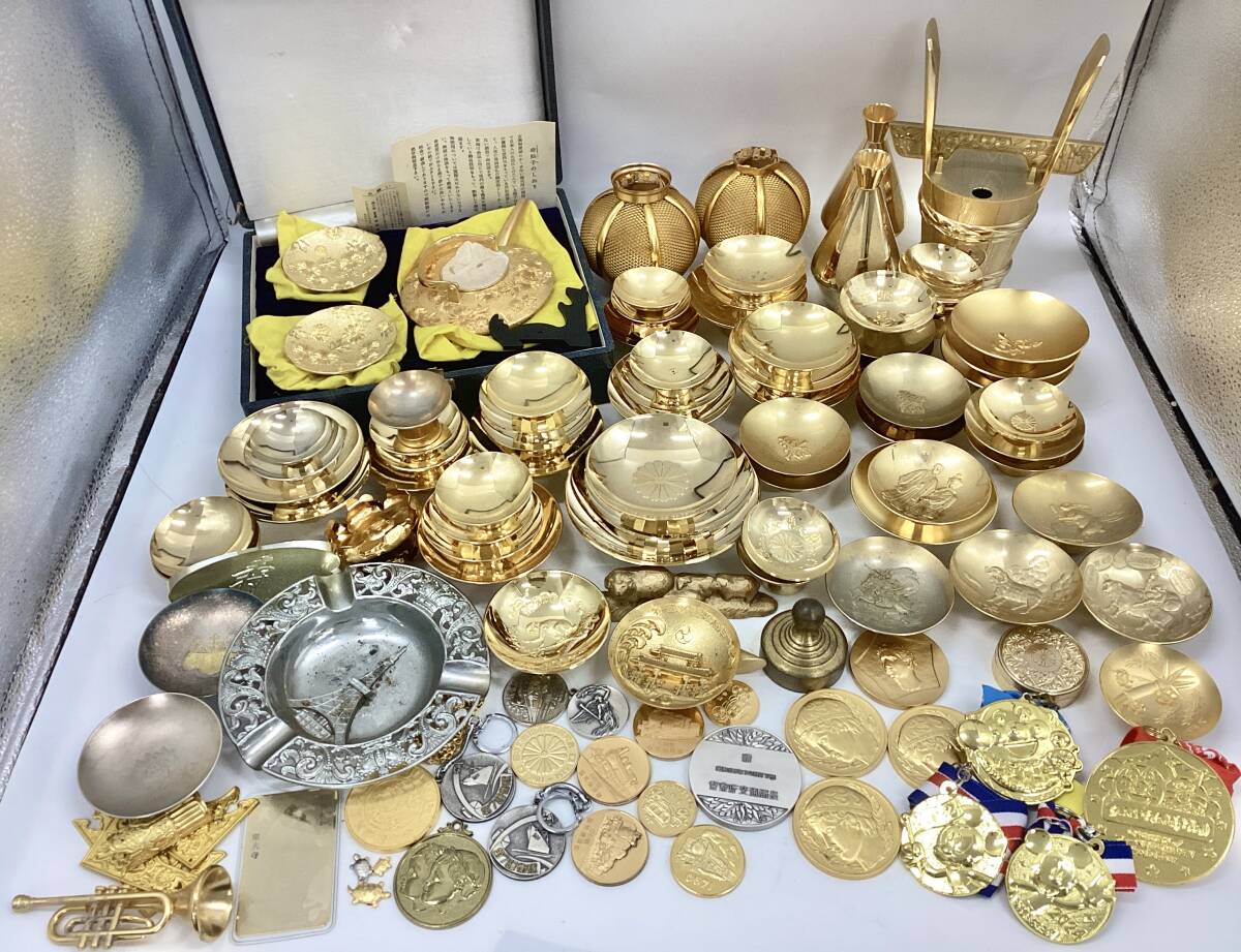 - 【7142-7442】 金杯 銀杯 まとめ 約9キロ 大量 酒器 朱肉 茶器 置物 メダル 24KGP SILVER.F ゴールド メッキ 製品 工芸品 など