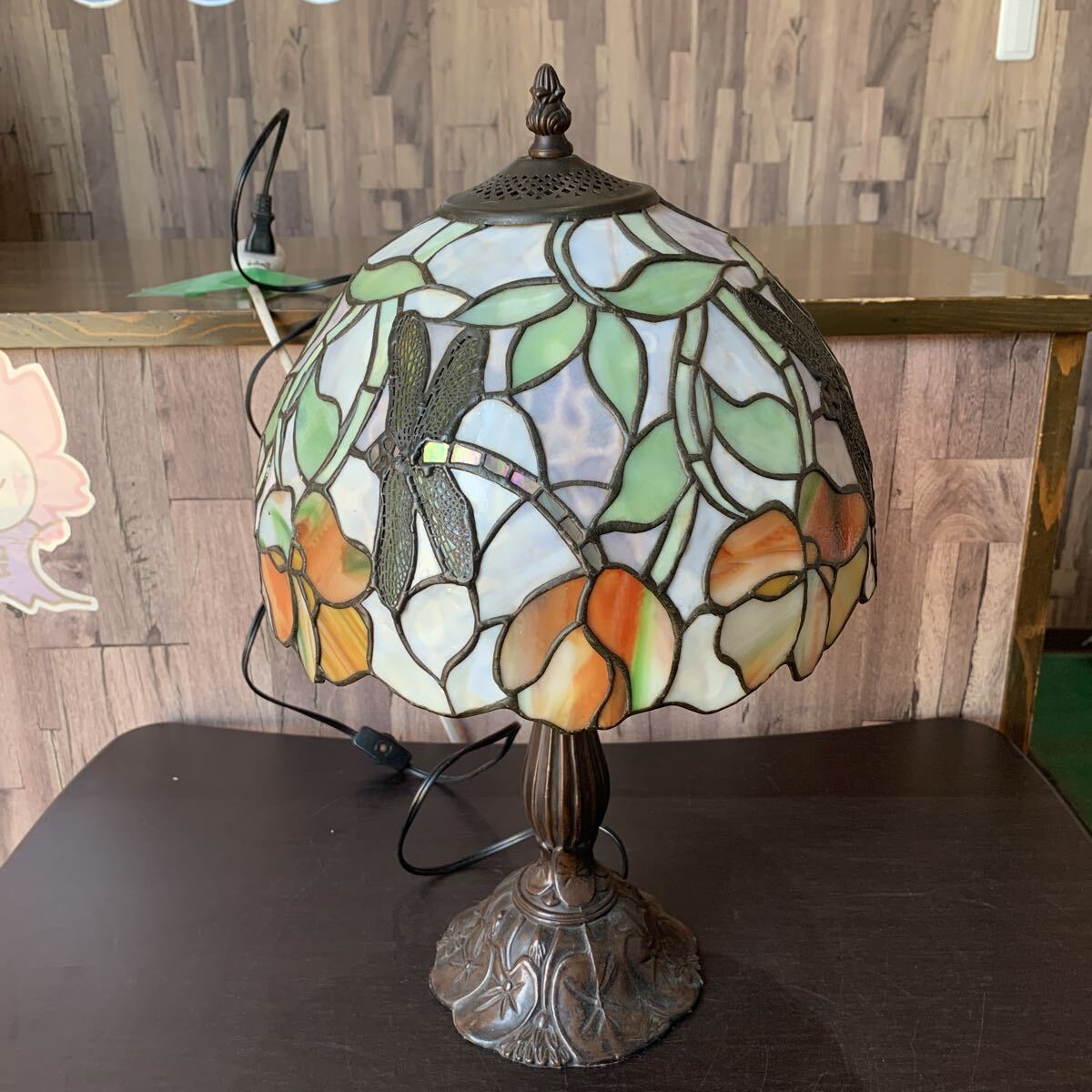 > (FUK085) ステンドグラス風 スタンドライト テーブルランプ 卓上ランプ 照明 インテリア アンティーク風 中古品