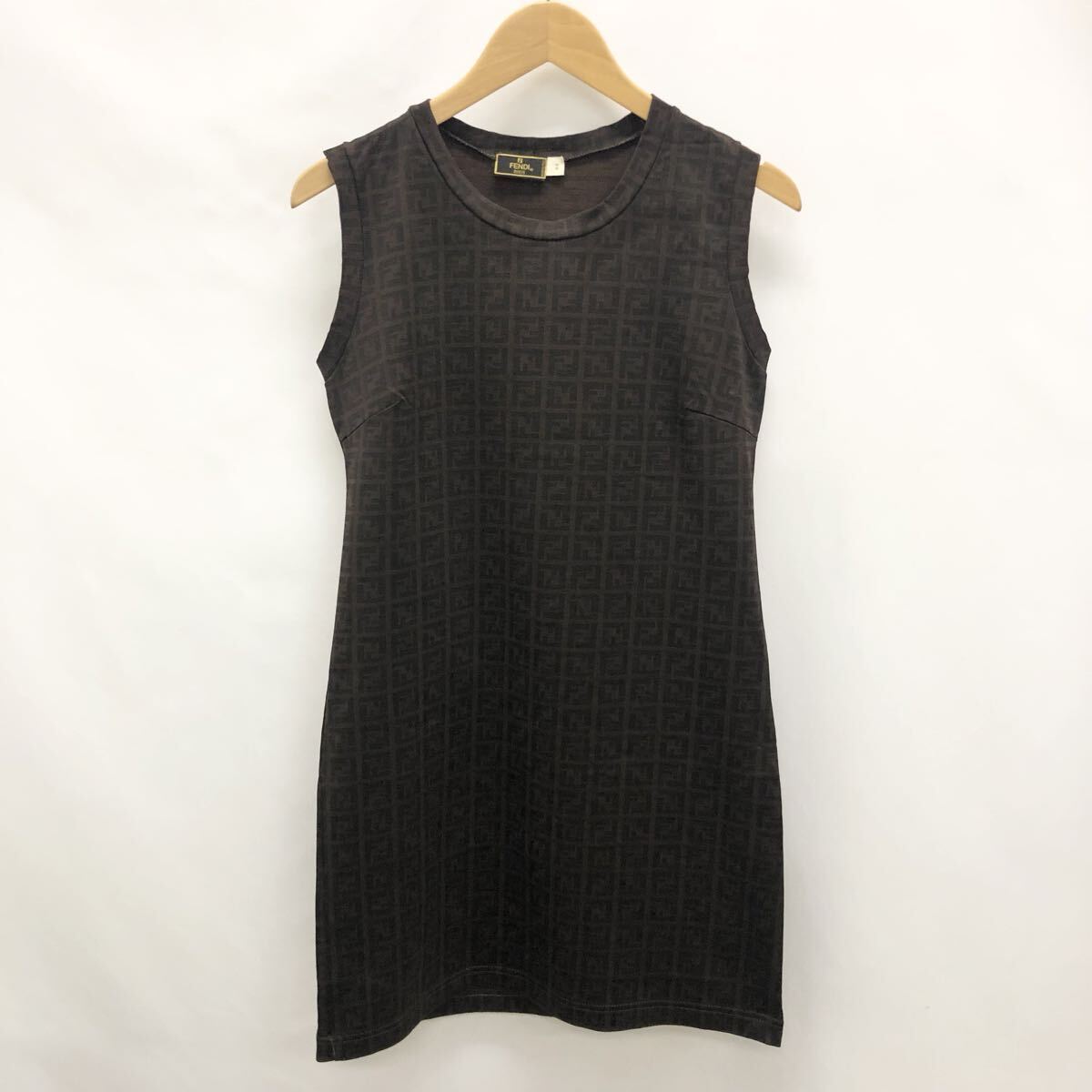 > FENDI フェンディ ズッカ柄 ノースリーブ ワンピース ブラウン イタリア製 44サイズ レディース 伸縮性 ヴィンテージ レディース