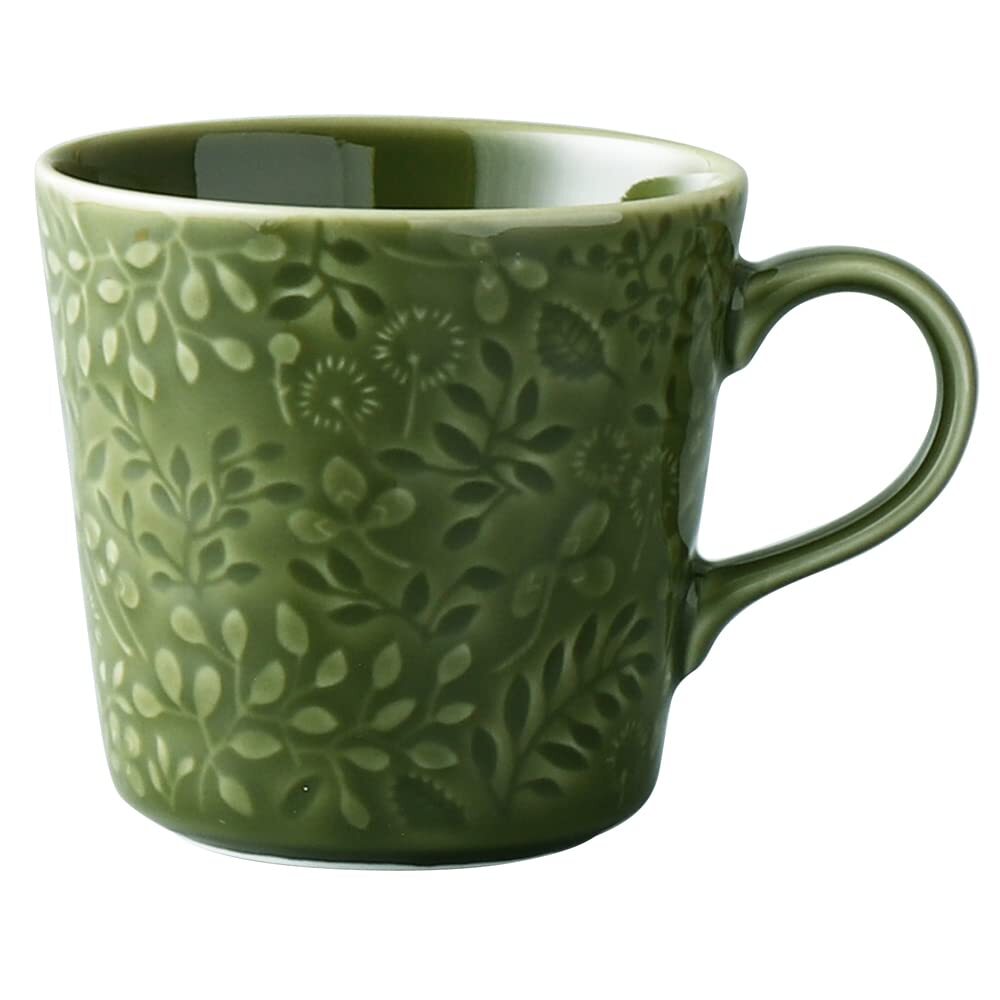 > NARUMI(ナルミ) マグカップ アンナ・エミリア 350cc フォレストグリーン 花柄 かわいい レリーフ 大きめ 電子レンジ オーブン 食