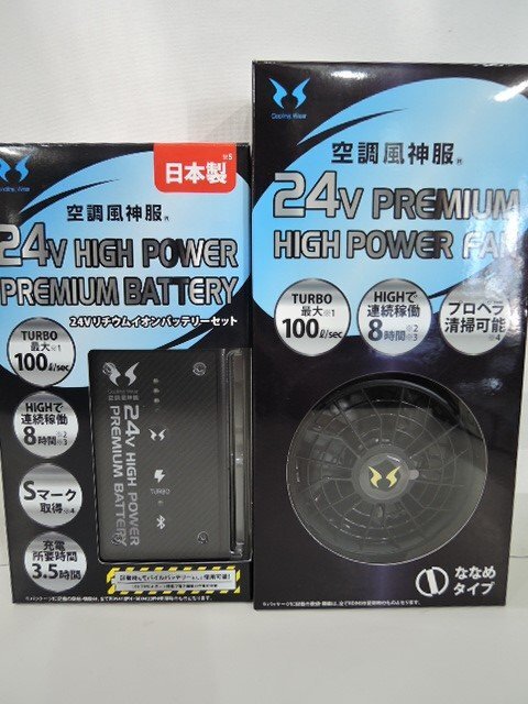 > SUN-S サンエス 2024年モデル 空調風神服 24V仕様 ファン+バッテリーセット(RD9490PJ+RD9410PH) ななめタイプ ACアダプタ欠品/難あり品