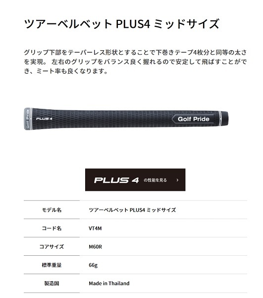 > ゴルフプライド グリップ ツアーベルベット PLUS4 ミッドサイズ バックライン無し(新品、未使用)(即納)