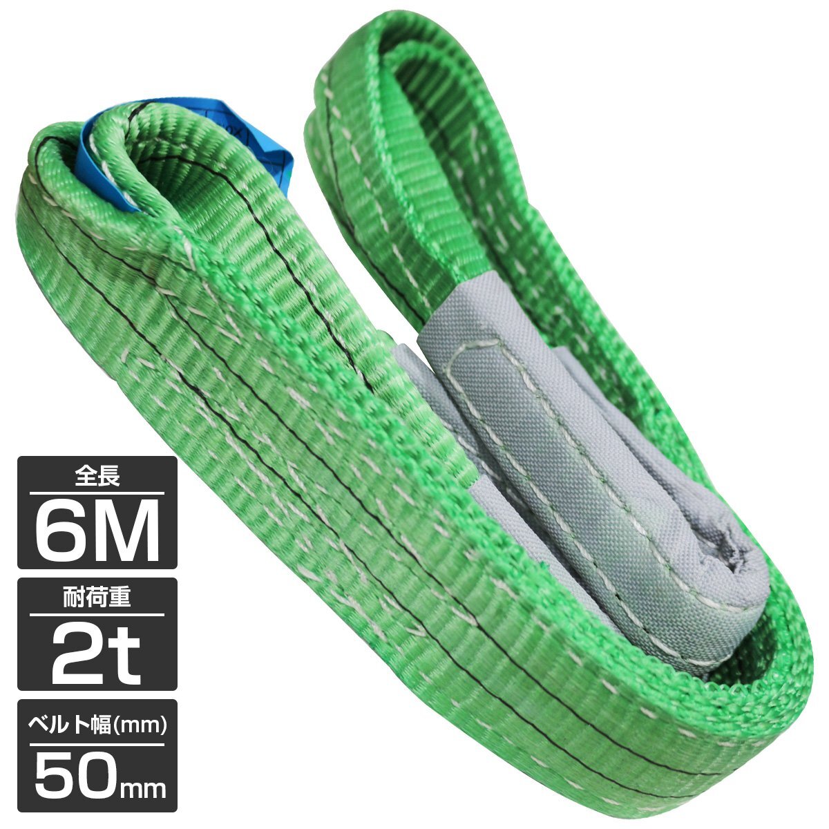 > [1本/耐荷2t/長さ 6m] スリング ベルト 吊上げ ナイロン クレーン ロープ 荷吊り 玉掛け 牽引 運搬 2000kg 2トン 幅50mm