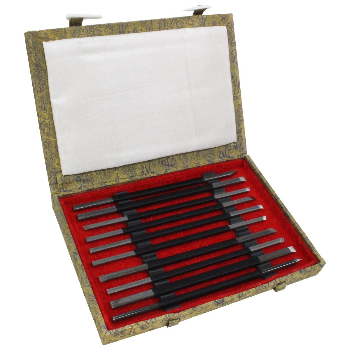 - 篆刻刀 10種類 セット 印刀 彫刻刀 専用箱 4mm/5mm 水墨画 書道 落款 印鑑 印章 石彫 DIY工具 ノミ のみ 篆刻 文房具 木工