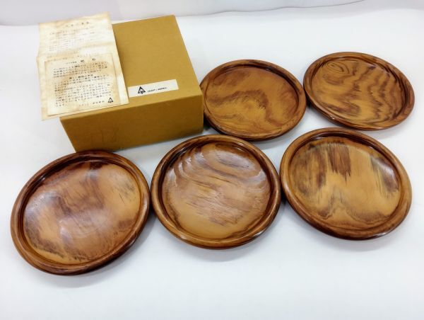 - サ/ クラフトアリオカ 肥松 菓子皿 銘々皿 プレート 小皿 盛皿 木皿 5枚セット 有岡良益 箱付き 香川県 讃岐 /HY-1283