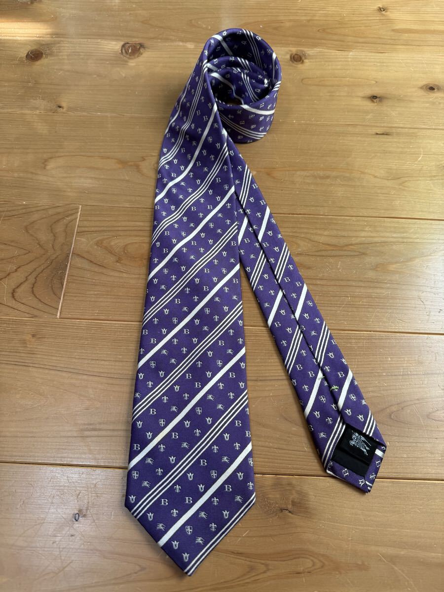 > バーバリーBURBERRY BLACK LABEL シルク ネクタイmade in Japan 総柄 紫系 ビジネスネクタイ 美品