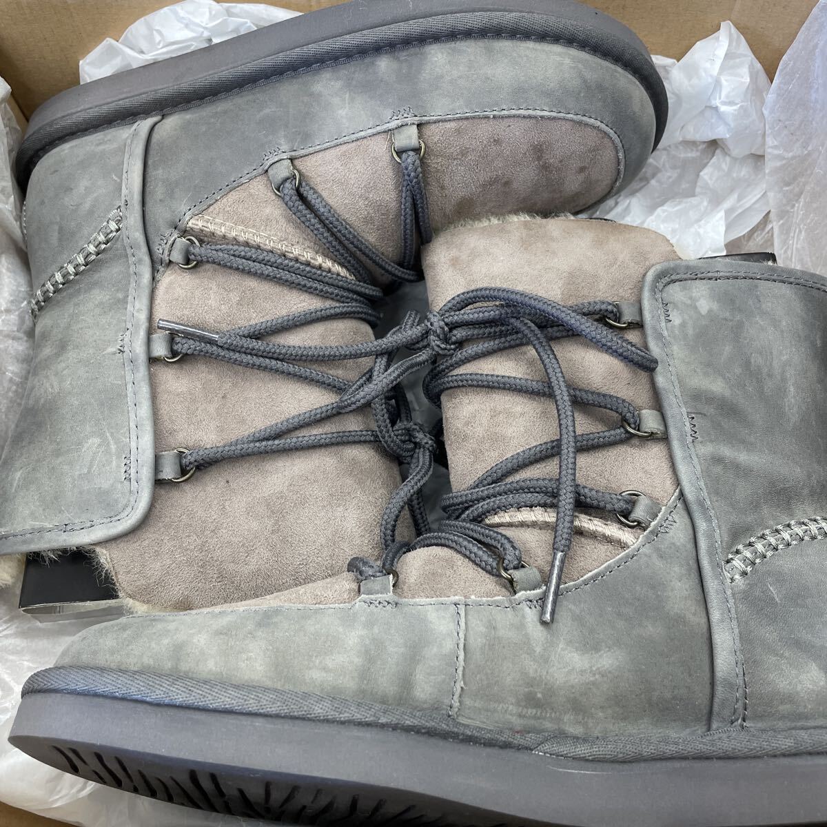 - UGG W LODGDEブーツ ショートブーツ ムートン 靴 ブラック スエード 裏ボア グレー US7 24cm