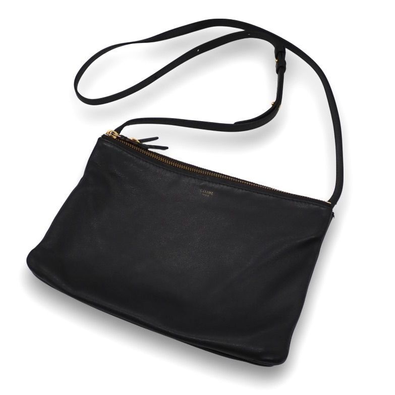 > フィービー期 旧ロゴ セリーヌ CELINE トリオ ラージ ショルダーバッグ 肩掛け レザー ブラック レディース バッグ 4419